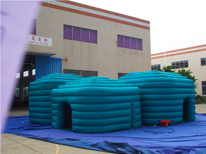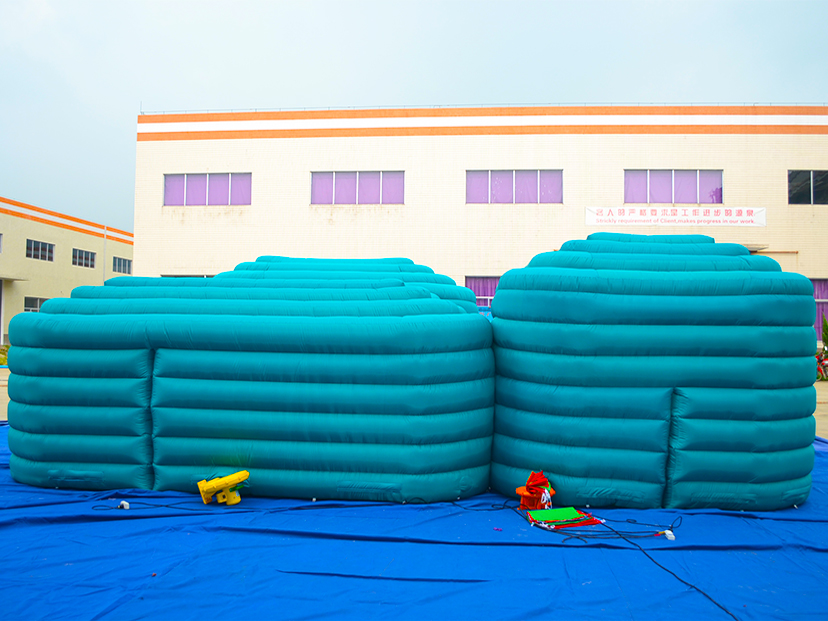 我们的充气迷宫游乐帐篷采用高强度环保PVC夹网布材质,通过欧盟CE、美国ASTM等国际安全认证,具备优异的抗撕裂、抗紫外线与防水阻燃性能,可适应-20℃至50℃的各类户外与室内环境,无论是烈日炎炎的嘉年华,还是微凉的室内亲子活动,都能稳定运行。迷宫式模块化结构设计融合了探索、钻爬等趣味玩法,搭配层叠的波浪形外观与清新的湖蓝色调,既能快速吸引儿童与家庭游客注意力,又能营造充满神秘感的探索氛围;内部多通道设计与出入口布局,让参与者在穿梭中锻炼空间认知能力,享受沉浸式互动乐趣。