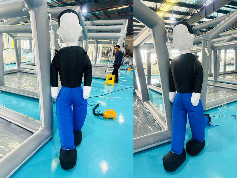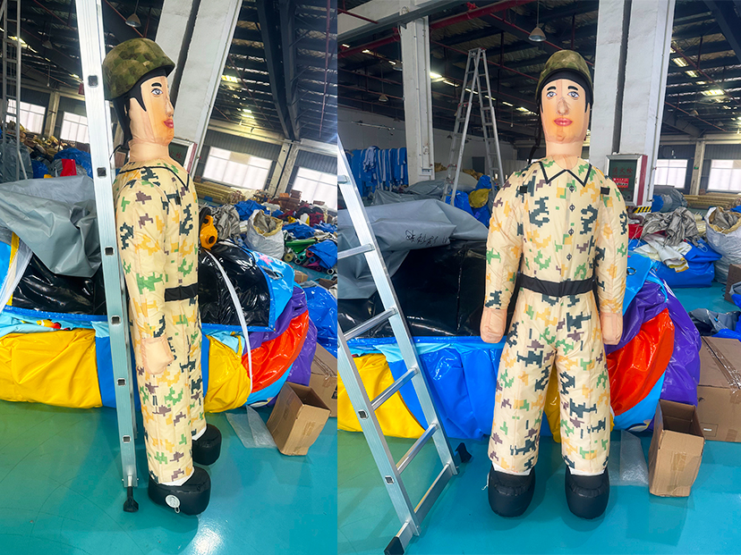 在生产与品质管控上,我们严格执行国际安全标准:采用高频热合与无缝拼接工艺,确保假人气密性与结构稳定性;加固底座搭配配重设计,可承受击打、拖拽、攀爬等高强度训练动作,不易倾倒;配套的大功率静音风机集群,实现10-15分钟快速充气与持续稳压,部署便捷无需复杂搭建,大幅节省人力与时间成本。同时,产品采用模块化折叠设计,折叠后体积小巧,便于跨境运输与仓储,可快速响应全球客户的批量订单与应急训练需求。